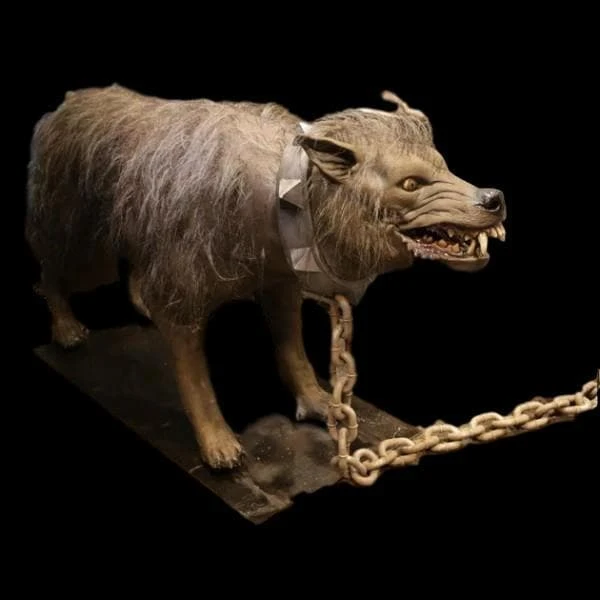 Vicious Animatronic dog that barks, growls, and moves! Comes with Digital Control, motion sensor and rights to downloadable soundtrack.  Requires AC Power and Air Compressor. Over 4 feet Long.